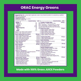 Over 40,000 total ORAC per serving ORAC Energy® Greens provides the antioxidant power of more than 24 servings of fruits & vegetables in every scoop.
