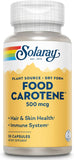Solaray's All Natural Food Carotene features 10,000 IU of vitamin A per softgel in a unique, highly advanced formula containing 100% natural carotenoids found in food. Includes beta carotene, alpha carotene, cryptoxanthin, zeaxanthin, lutein and hundreds of other valuable carotenoids.