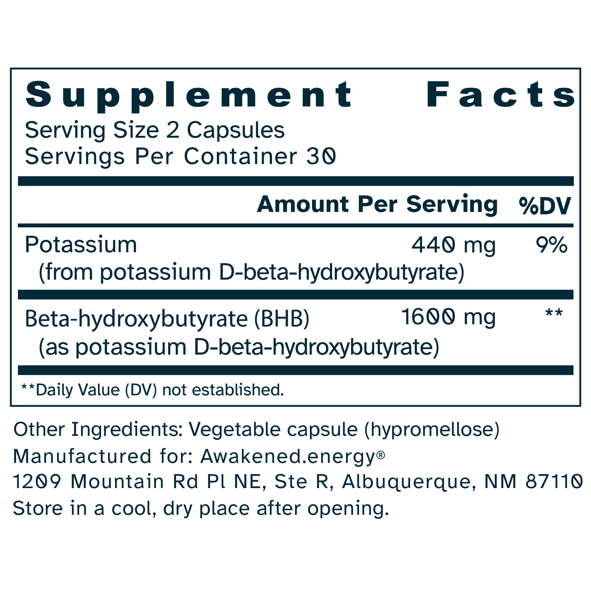 For optimal results, take 2 capsules daily, preferably with a meal, or as directed by a healthcare professional. Incorporate Awakened Energy K-BHB into your daily routine to help maintain consistent energy levels and metabolic support.